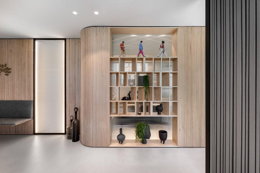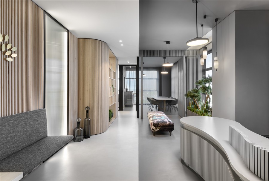 הפרויקט תוכנן עבור משרד הפועל בזירה תחרותית ודינמית, מה שדרש יצירת שפה עיצובית ייחודית המשקפת חזון חדשני. תכנון החלל התבסס על חלוקה מדויקת ושימוש מבוקר בפלטת צבעים וחומרים מצומצמת. התוצאה: מרחב משרדי מינימליסטי ואלגנטי, בו שולבו מערכות נגרות מתקדמות, דלתות מותאמות, ספריות פונקציונליות ועמדות קבלה מוקפדות. המראה המתקבל מדויק, שקט ויוקרתי – כזה שמעביר מסר ברור של מקצועיות ושליטה בפרטים.