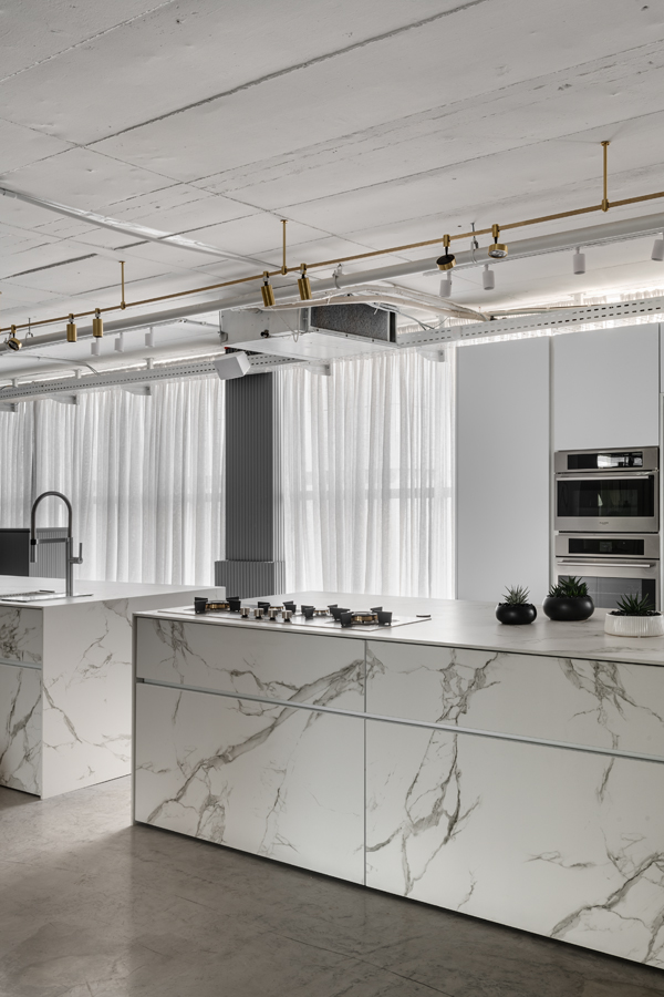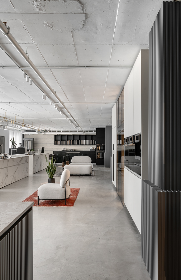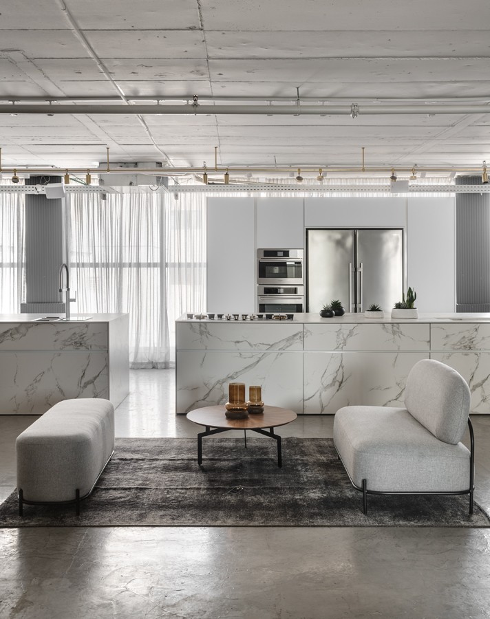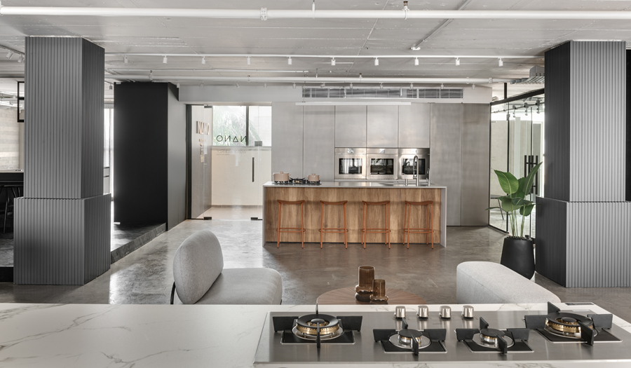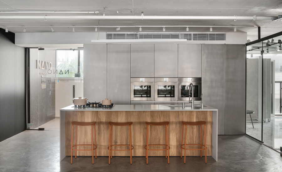 אולם התצוגה הראשון של חברת נאנו, המתמחה במטבחים מתקדמים, תוכנן תוך מענה לאתגר תכנוני משמעותי של חלל נמוך במיוחד. התכנון הפך את המגבלה להזדמנות, ויצר תחושת גובה ופתיחות באמצעות פרופורציות מדויקות, חומריות מאופקת וניקיון צורני. המטבחים הוצגו בקונפיגורציה שתוכננה בקפידה יחד עם צוות החברה, ושולבו עם משטחים, חיפויים ומוצרי חשמל של מיטב המותגים. השפה האדריכלית נשענה על ערכי יוקרה, בהירות ואיזון, והשתלבה באופן מלא עם הקונספט המיתוגי שגובש לפרויקט.